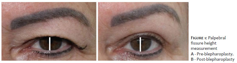 INTRODUCTION: The eyelids have specific functions, such as eye protection. Aging can lead to excess upper eyelid skin (upper dermatochalasis), causing functional and aesthetic impairment. Subjective assessments of improvement pre- and post-blepharoplasty may be underestimated, since even small increases in palpebral fissure height (PFH) can improve the visual field.