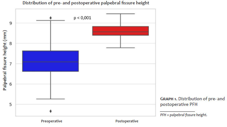 RESULTS: A total of 170 eyelids were analyzed. There were significant differences in mean PFH values before and after the procedure (7.088 vs. 8.618 mm; p < 0.001) and in patient self-assessment (p = 0.001), but no differences between the subjective assessments by independent dermatologists (p = 0.665).