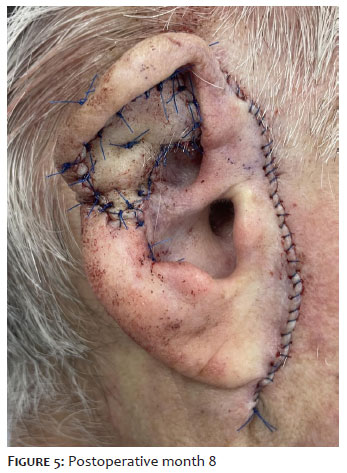 8. Pereira N, Tolkachjov SN, Weenig RH, Martires KJ. Tunnelized preauricular transposition flap for reconstruction of auricular defect. J Dermatol Treat. 2014;25(5):441-3.