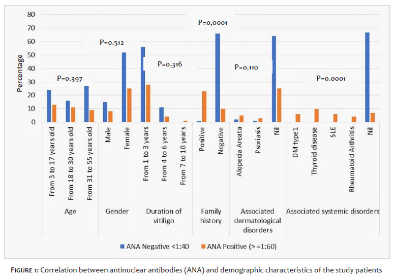 METHODS AND PATIENTS: This is a retrospective study using preexisting patient records from the Pigmentary Disorders Unit of the Cairo Hospital of Dermatology and Venereology. The analysis included patients with complete medical records, including demographic data, clinical evaluation (VIDA and VASI scores), and laboratory results for ANA titer. Their correlation with disease severity and patient demographics was analyzed.