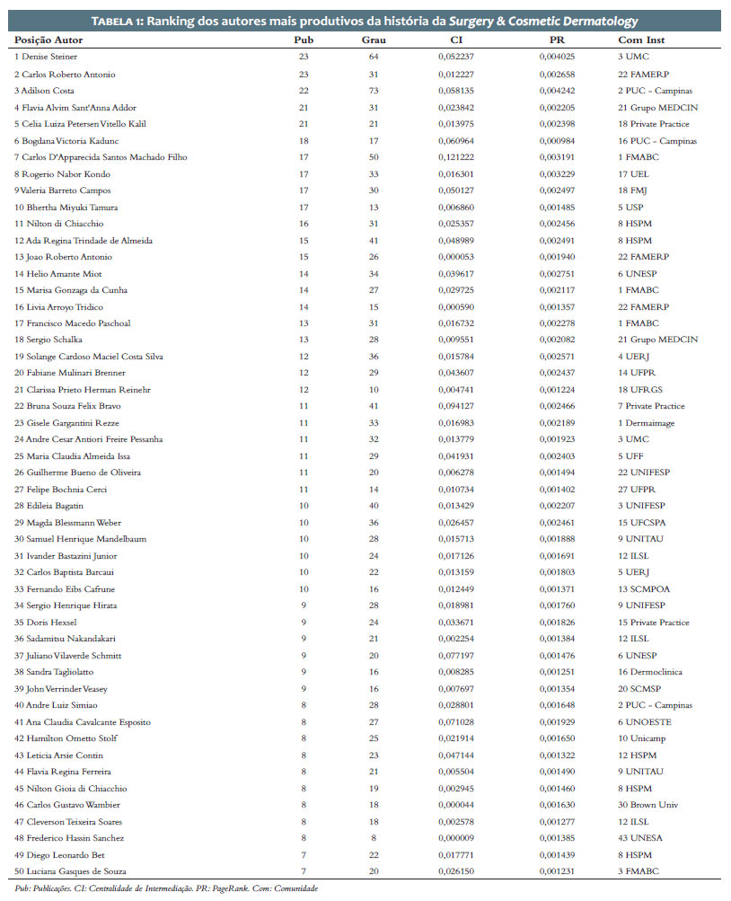 Como citar este artigo: Grimaldi HC, Camargo SS. Mapeando Contribuições Científicas em Cirurgia e Dermatologia Cosmética (2009-2024): Autores, Instituições e Países - Parte I. Surg Cosmet Dermatol. 2025;17:e20250492.